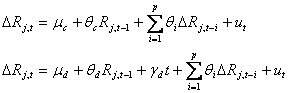 , rezultând testul ADF. Ecuatiile de testat vor fi: