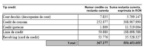 lucrul cu creditele în proces de derulare: acordare, rambursare a creditelor si plata a dobânzii;