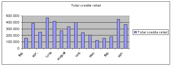 In ceea ce priveste oferta de credite de retail, inceputul a fost reprezentat de oferirea catre populatie a creditelor de trezorerie, limitate la un numar de cateva salarii, urmate apoi de credite pentru bunuri de folosinta indelungata. Aceasta din urma categorie a prezentat o dinamica accentuata, crescand de la an la an din ce in ce mai mult. Se poate spune ca anul 2002 a fost un an de varf pentru acest tip de credite, lucru care dus la cresterea numarului de conventii intre marile lanturi de magazine ce comercializeaza bunuri de larg consum si banci, cererea de credite in acest domeniu depasind cu mult asteptarile.