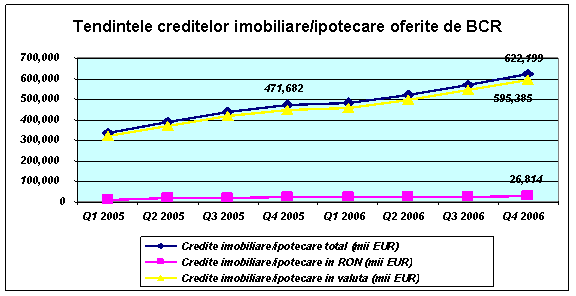 Un alt segment de mare interes din categoria creditelor de retail este reprezentat de creditele imobiliare si, mai nou, de cele ipotecare. Inca de la inceput cererea pentru acest tip de credite a fost mare, datorita cererii extrem de mari pentru locuinte in contextul lipsei unei alternative pentru cumpararea de case cu plata in rate. Acest tip de credite s-au dezvoltat mai incet, datorita riscurilor mai mari pentru banca, generate de sumele mult mai mari ale creditelor si termenele lungi de rambursare, precum si datorita conditiilor mai restrictive de acordare a unor astfel de credite. Totusi, cererea este foarte mare, motiv pentru care tot mai multe banci ofera in prezent credite imobiliare si, mai nou, pentru a veni in intampinarea cerintelor clientilor, credite ipotecare. Se poate spune ca, daca anul 2002 a fost anul creditelor de consum pe piata de retail, anul 2007 este in mod cert anul creditelor imobiliare si mai ales ipotecare.