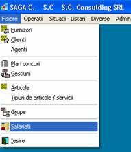 Prima etapa în ceea ce priveste salariile este introducerea datelor privind salariile, din meniul Fisiere - salariati: