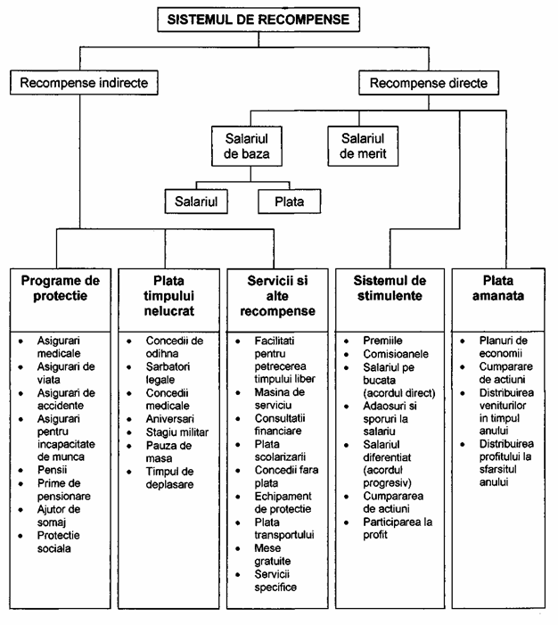 Sistemul de recompense reprezinta ansamblul elementelor sau veniturilor materiale si nemateriale, financiare si non-financiare, a facilitatilor sau avantajelor prezente si viitoare determinate direct sau indirect de calitatea angajatilor, precum si de activitatea desfasurata de acestia.