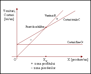Analiza "punctului de echilibru" este un model care compara încasarile R cu costurile C, exprimate în functie de volumul activitatii X, potrivit reprezentarii grafice din figura 1.