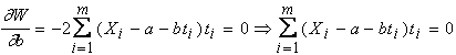 statistice unde Pentru a îndeplini conditia de minim, derivatele acestei functii în raport cu a si b se anuleaza astfel: Rezulta sistemul de ecuatii normale: