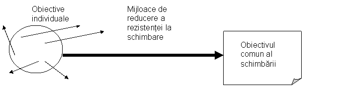 Pentru a asigura însusirea obiectivului schimbarii ca obiectiv comun grupului este necesara crearea constiintei la nivelul fiecarui individ în parte cum ca obiectivul propriu este parte integranta a obiectivului comun (Fig. 4.5.). Abia dupa depasirea acestei etape indivizii de la nivelul grupului vor deveni activi asigurând astfel progresia.