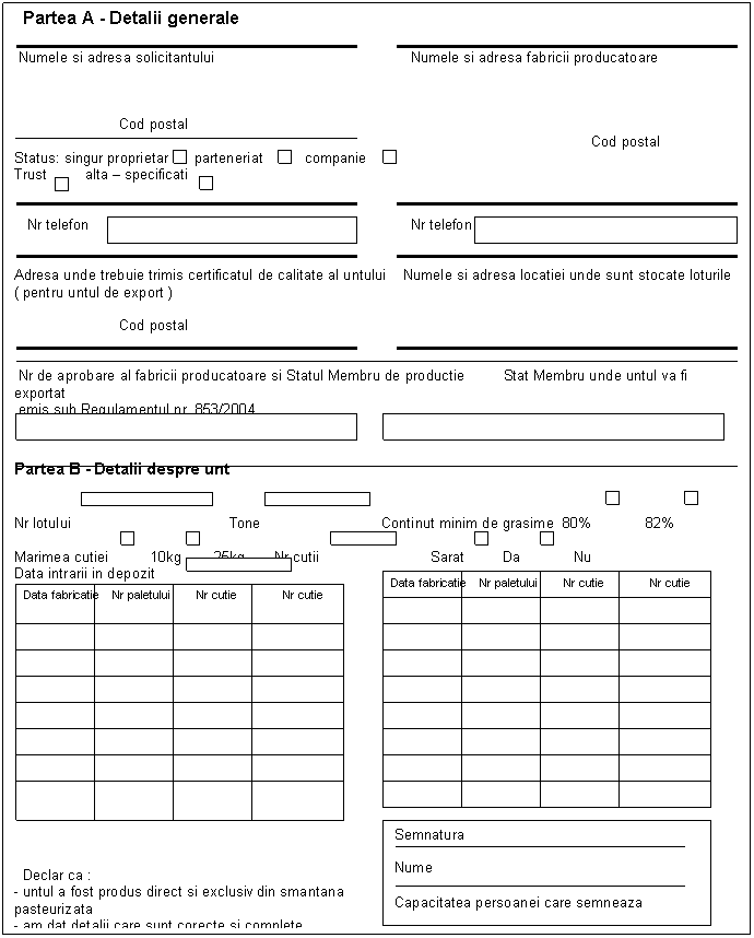 Aceste documente trebuie sa permita verificarea pe lot, originea si data / datele de fabricatie a untului stocat, greutatea si data / datele de mutare a loturilor.