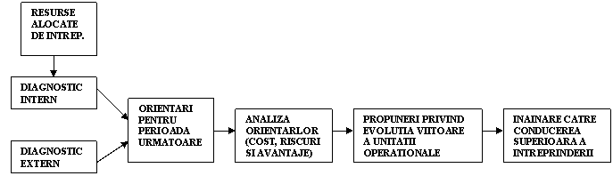 unitatea operationala primeste, de la directia superioara, resursele necesare pentru desfasurarea activitatii in perioada urmatoare, tinand seama de aceste resurse repartizate, unitatile operationale efectueaza un diagnostic extern si intern al activitatii pentru a putea adopta astfel acele orientari strategice pentru perioada urmatoare.