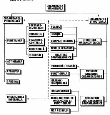 Spre deosebire de organizarea procesuala, prin care se întelege stabilirea principalelor categorii de munca, a proceselor necesare realizarii obiectivelor fundamentale ale societatii comercia 17417h718r le, organizarea structurala consta în gruparea functiunilor, activitatilor, atributiilor si sarcinilor în functie de anumite criterii si repartizarea acestora în scopul realizarii lor, pe grupuri de lucru si salariati în vederea concretizarii conditiilor care sa asigure posibilitati pentru realizarea obiectivelor societatii comercia 17417h718r le. si tot pe planul comparatiei între cele doua forme principale de organizare a societatii comercia 17417h718r le, vom retine ca, în timp ce rezultatul organizarii procesuale îl reprezinta functiunile, activitatile, atributiile si sarcinile, rezultatul organizarii structurale îl reprezinta serviciile, sectiile, birourile si altele, pe scurt, structura organizatorica.