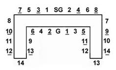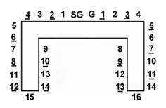 Pentru a se evita plasarea femeilor la capetele meselor este de preferat atunci când numarul femeilor este egal cu cel al barbatilor, sa se foloseasca urmatoarea varianta de plasament: |