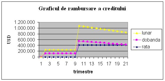 Imprumutul este acordat pe o perioada de cinci ani,cu doi ani de gratie( pe perioada respectiva nu se platesc ratele de credit, platindu-se doar dobanda).