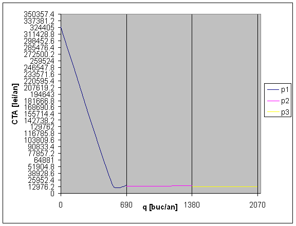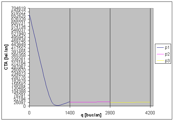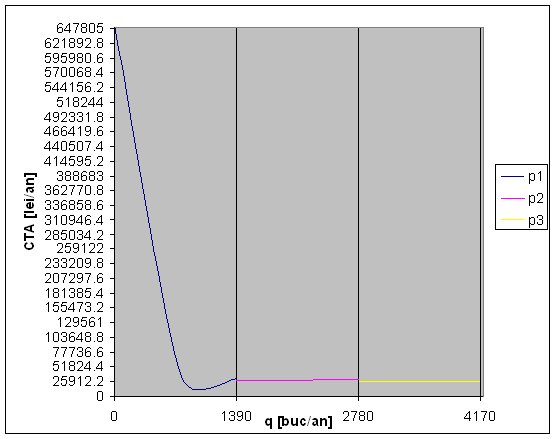 ca CTA este minim pentru q=1380 buc, insa aceasta cantitate nu permite un numar