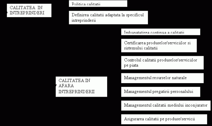 Conceptul de calitate totala se coreleaza cu conceptul de produs total si exprima masura in care un produs sau serviciu satisface sistemul de necesitati umane , individualesi/sau sociale pe 3 dimensiuni.