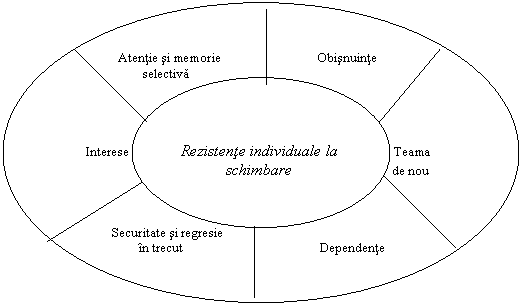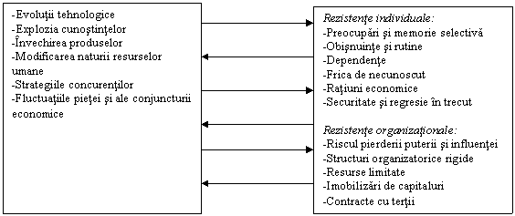 Presiunile in vederea schimbarii organizationale sunt permanente, de aceea este firesc si inevitabil ca actorii organizatiei sau chiar intreaga organizatie sa se opuna, intr-o masura mai mare sau mai mica, schimbarii. Cauzele acestei rezistente pot fi foarte diferite (fig. 2).