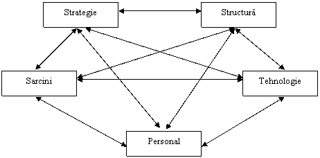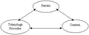 Modelarea sistemelor socio-tehnice prin schimbarea simultana a caracteristicilor tehnice si sociale ale organizatiei in scopul armonizarii relatiilor dintre dimensiunile sale tehnica si socio-umana. Intr-o forma simplificata, principalele elemente ale schimbarii intr-un sistem socio-tehnic sunt prezentate in fig. 11.