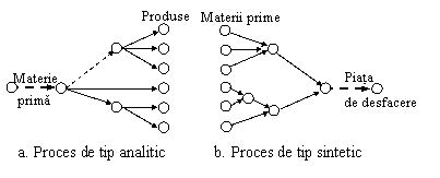 Materiile prime necesare fabricatiei, reprezinta legatura primara cu mediul exterior fiind caracterizate prin starea, volumul, greutatea, localizarea si posibilitatile de transport de la furnizori la īntreprindere. Daca materia prima este voluminoasa, grea, si se utilizeaza la obtinerea mai multor produse, procesele īntreprinderii producatoare sunt de tip analitic (figura 6.2 a), iar decizia de amplasare va lua īn considerare cu prioritate o zona geografica īn proximitatea firmei furnizoare de materie prima. Procesele sintetice (figura 6.2 b) tipice benzilor de montaj cu un singur produs finit obtinut prin asamblarea diferitelor piese achizitionate de la mai multi furnizori situati īn zone geografice diferite vor fi amplasate īntr-o zona mai apropiata de piata de desfacere, obtināndu-se avantaje concurentiale certe pentru viitoarele afaceri.