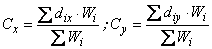 Se calculeaza centrul de greutate pe cele doua directii Ox si Oy cu formulele: