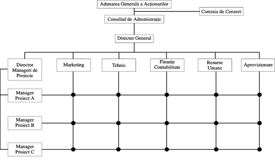 Managerul de proiect are autoritate administrativa iar directorii compartimentelor functionale iau deciziile de natura tehnica. Succesul proiectului depinde intr-o masura foarte mare de capacitatea managerului de proiect de a negocia pentru obtinerea resurselor si asistentei tehnice necesare;