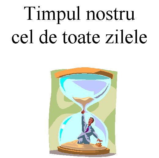 O RESURSA LIMITATA Daca nu avem bani, putem imprumuta sau putem gasi o cale de a castiga mai multi. Daca nu avem suficiente resurse umane, putem angaja personal. Daca avem nevoie de mai multe echipamente, putem cumpara. Dar in privinta timpului, lucrurule sunt foarte diferite: nu vom putea schimba niciodata faptul ca sunt numai 24 de ore intr-o zi, 168 intr- o saptamana. Mai mult, este dificil sa lucrezi eficient mai mult de 10 sau 12 ore pe zi, sau de 60 pana la 70 de ore pe saptamana.Timpul este una dintre acele resurse care nu poate fi "pusa la pastrare" si nu poate fi cumparat sau imprumutat.Iar acest lucru nu il putem decide noi, nu il putem negocia. Cele trei ore petrecute intr-o sedinta nefructuoasa, cele doua luni dedicate unui proiect inutil , sunt pierdute pentru totdeauna. |