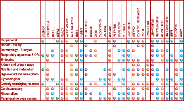 Statiunea este indicata in tratamentul bolilor digestive (gastrita cronica cu hipoaciditate, constipatie cronica, colita cronica), al bolilor hepatobiliare (dischinezie biliara, colicistita cronica care prezinta sau nu calculi, hepatita cronica, pancreatita cronica, starii postoperatorii in bolile ficatului), boli ale sistemului renal si urinar (litiasa la rinichi, pielonefrita cronica hermal = 41°C, and hyperthermalaparatului digestivin, infectii urinare), tulburari metabolice si nutritionale (diabet melitus, stari hiperuremice, obezitate), in afectiuni respiratorii (bronsita, traheobronsita cronica), in boli ale sistemului nervos periferic (pareza, sechele ale poliomielitei), stari reumatismale (spondiloza, artroza, poliartroza, tendinita), stari posttraumatismale (dupa entorse, luxatii si fracturi), boli ginecologice (sindrom ovarian cauzat de menopauza), boli O.R.L. (rinosinuzita cronica, laringita cronica alergica etc.), boli dermatologice, cardiovasculare si de alta natura.