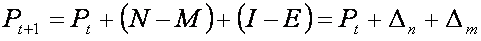Intrare (nastere, imigratie), iesire (deces, emigratie) |