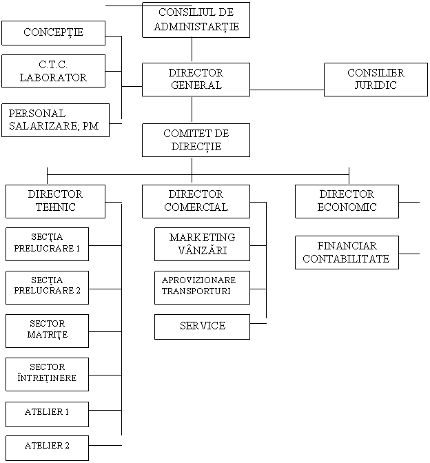 d). Structura organizationala a societatii este moderna, cuprinzând sectoarele, sectiile si compartimentele necesare unei întreprinderi moderne;