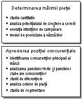 analiza concurentei: identificarea punctelor tari si punctelor slabe ale concurentilor directi, investigatii privind politica de preturi, distributia, politica promotionala, produse noi, profilul clientilor concurentei s.a.