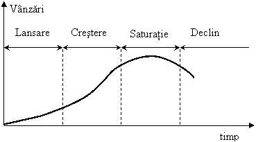 De-a lungul acestuia, volumul vânzarilor urmeaza, de regula, o curba de tipul celei din figura urmatoare: