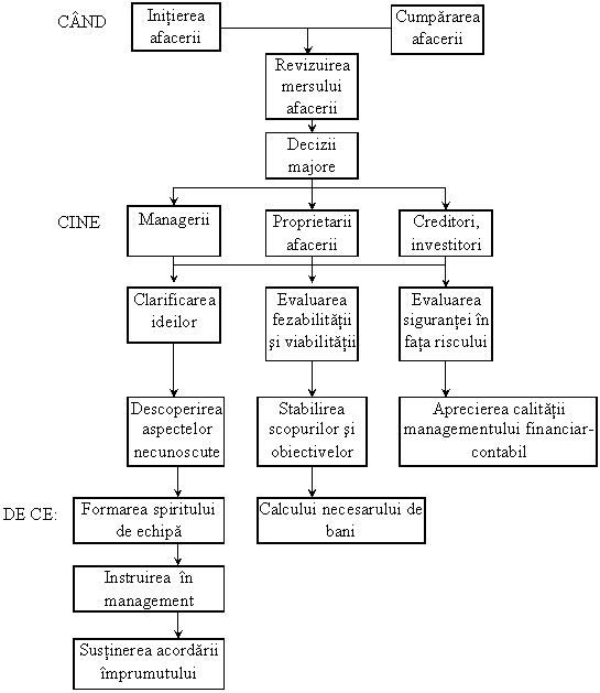Fig. 6.2. Rolul planului afacerii având în vedere momentul (CÂND), persoanele (CINE) si motivatia (DE CE) elaborarii lui.