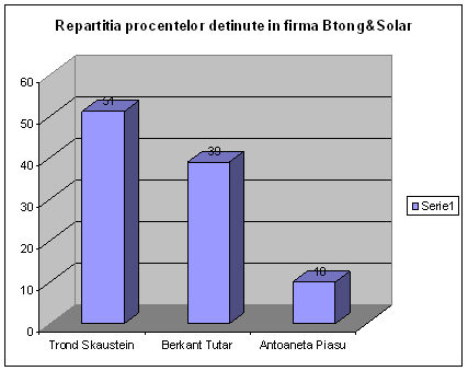 Repartitia procentelor detinute in firma S.C. Btang&Solar S.R.L. Braila este prezentata in tabelul nr.1.