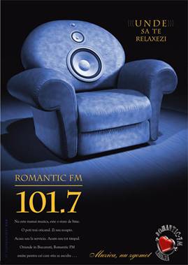 Romantic Fm targeteaza in special ascultatorii din București iar sloganul ”Muzica nu zgomot” este reprodus pe cele 3 printuri prin intermediul unor boxe implementate de exemplu pe un fotoliu și care transmit unde. Așadar ai unde sa te relaxezi, sa plutești și sa visezi.