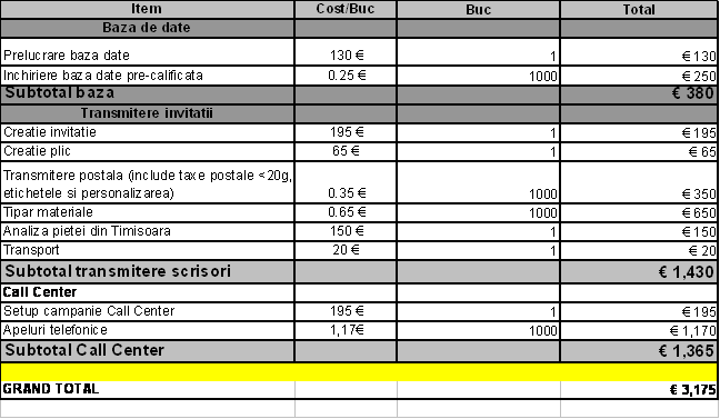 direct mailing(spre ex.) , tine cont de costul fiecarui element care o