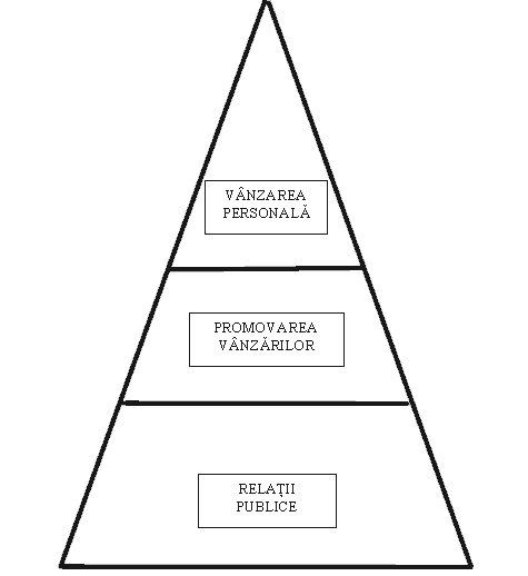 - stadiul de pregatire a consumatorului pentru adoptarea deciziei de cumparare. Astfel, în etapa de constientizare si cunoastere, rol mai mare au pubilicitatea si relatiile publice, iar în fazele urmatoare, vânzarea personala.