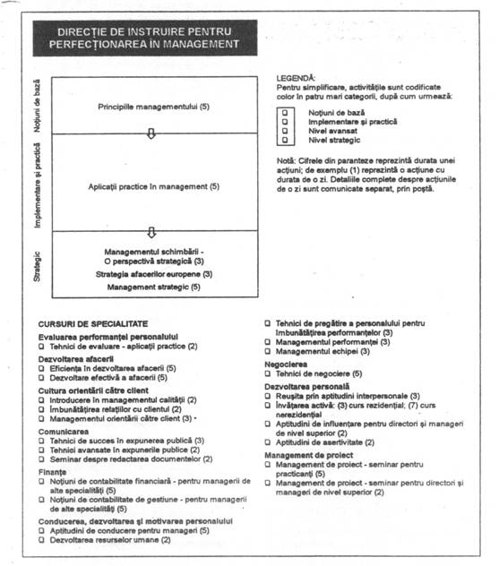 Instruirea formala: consta în cursuri organizate în afara orelor de serviciu, în cadrul sau în afara companiei.