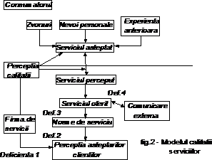 Modelul prezentat de Zeithaml, Parasuraman, Berry pune in evidenta relatiile existente intre cele 4 deficiente si perceptia calitatii serviciilor (fig.2).