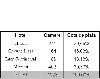 Cota reala de piata a celor mai importante hoteluri pe piata din Bucuresti in momentul lansarii hotelului Howard Johnson
