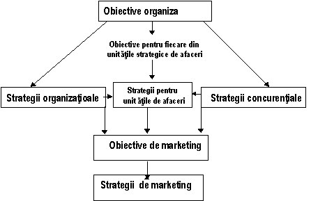 Īn figura 3.2. sunt prezentate legaturile īntre planificarea strategica la nivelul organizatiei industriale si obiectivele si strategiile de marketing.