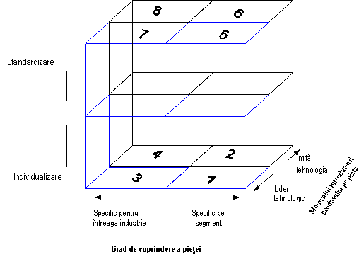Pentru o piata industriala puternic orientata tehnologic se identifica minim opt optiuni strategice, daca sunt implicate numai trei axe de coordonate, reprezentate īn figura 3.3.