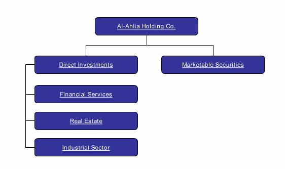 Al-Ahlia Holding Co. (AHC) 444j924e is a leading investment company in the GCC region (Cooperation Council for the Arab States of the Gulf). AHC has a paid-up capital base of over KD 75 million (Kuwaity Dinar), and is listed on the Kuwait Stock Exchange. The Company's activities are grouped under the Direct Investments and Marketable Securities divisions. |