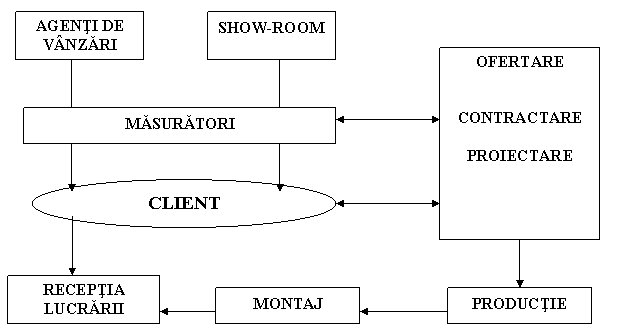 Clientul poate contacta firma prin intermediul agentilor direct la firma sau ia legatura cu personalul abilitat de la show-room, apoi se trece la masuratori, ofertare, contractare. Astfel, tabloul de tamplarie trece la proiectare si ajunge in productie, dupa care, o echipa de montaj se deplaseaza la adresa amplasamentului pentru montaj si receptia lucrarii.