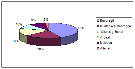 Structura vanzarilor pe regiuni, in anul 2009