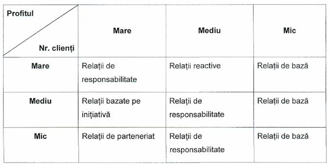 Tipul relatiilor in functie de profitul obtinut pe fiecare client si numarul de clienti