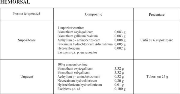 Actiune farmacodinamicǎ. Oxiiodgalatul de bismut si subgalatul de bismut au o actiune sicativǎ si antisepticǎ localǎ. Clorhidratul de procainǎ (novocaina) si paraaminobenzoatul de etil (anestezina) au actiune localǎ, cu efect antihemoragic, prelungind totodatǎ actiunea vasoconstructivǎ localǎ, cu efect antihemoragic, prelungind totodata actiunea anestezicǎ localǎ a clorhidratului de procainǎ si a paraaminobenzoatului de etil. In total o actiune antiinflamatorie, anticongestivǎ si anestezicǎ.