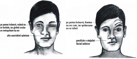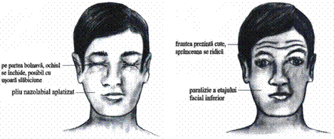Diagnosticul diferential, pe criterii clinice, intre paralizia faciala de tip central si cea de tip periferic: