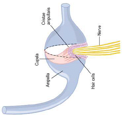 semicircular determina o stimulare a crestei respective, prin deplasari ale cupulei.