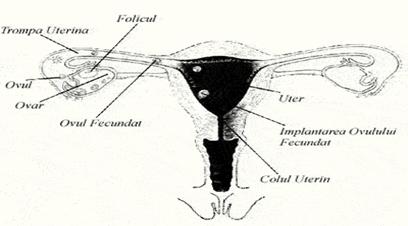 Uterul primeste si fixeaza blastocistul in endometrul (ovoimplantatia) transformat estrogeno-progestativ ; asigura hranirea si dezvoltarea oului lipsit de rezerve nutritive in cele 9 luni (280 zile) de gestatie.