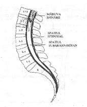 Maduva spinarii coboara pana la nivelul vertebrei L2 iar sacul dural pana la vertebra S2. Pentru a evita lezarea maduvei, injectarea anestezicului local trebuie efectuata in aceasta zona, intre L2 si S2, unde sacul dural contine numai lichid cefalorahidian si radacinile lombare si sacrate (coada de cal).