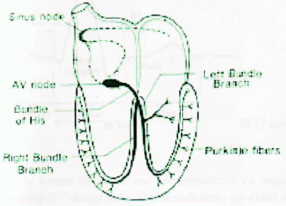 Conducerea impulsurilor cardiace normala impreuna cu imaginea ECG