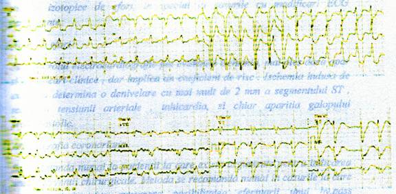 Sub controlul electrocardiografic pot evidentia ischemia, mai ales daca apar si modificari clinice, dar implica un coeficient de risc. Ischemia indusa de exercitiu determina o denivelare cu mai mult de 2 mm a segmentului ST, scaderea tensiuniiarteriale, tahicardica, si chiar aparitia galopului protodiastolic.