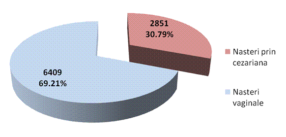 Grafic 1. Distributia procentuala a operatiilor cezariene din totalul nasterilor,