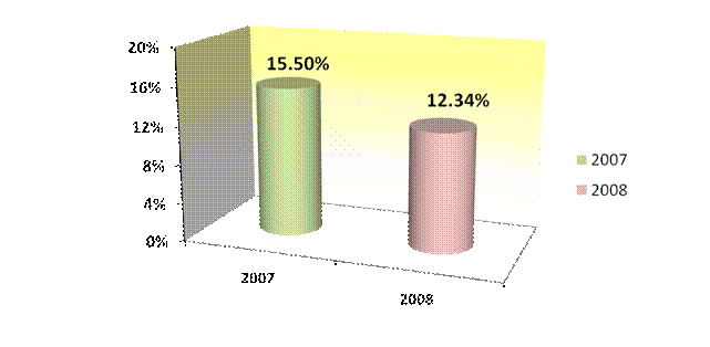 Grafic 8. Proportia anuala a numarului de prezentatii deflectate, din totalul distociilor mecanice ca indicatii pentru cezariana, din totalul operatiilor cezariene efectuate in perioada 2007 – 2008, in cadrul Spitalului de Obstetrica-Ginecologie „Prof. Dr. Panait Sirbu” din Bucuresti